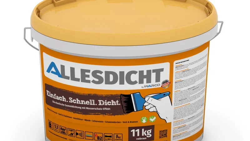 ALLESDICHT – die Gummihaut aus dem Eimer – ist eine innovative, wasserverdünnbare Abdichtungsmasse für Neubau, Sanierung und Reparatur. Das zähflüssige Material wird direkt aus dem Eimer auf die Fläche aufgebracht und verwandelt sich nach der Trocknung in eine elastische, fugenlose Gummihaut. So entsteht ein dauerhafter Schutz gegen eindringende oder aufsteigende Feuchtigkeit – selbst an schwierigen Details wie Durchdringungen, Anschlüssen oder Übergängen.