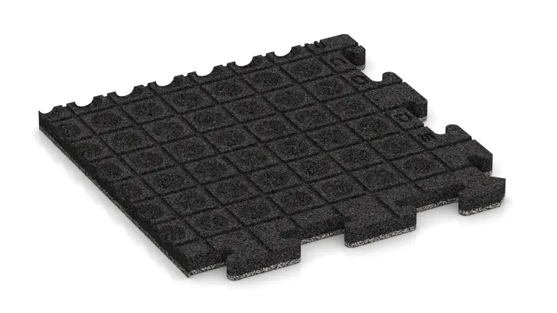 Mit der Eckplatte gelingt ein exakter, gerader Abschluss an den vier Ecken einer Plattenfläche. Jede Platte ist ein Viertel einer ganzen Puzzleplatte: Die Innenseiten verfügen über die vertraute Puzzleverzahnung und lassen sich passgenau mit den übrigen Platten verbinden, während die Außenseiten glatt und gerade verlaufen. So entsteht ein harmonischer und funktionaler Rahmen um die gesamte Fläche.