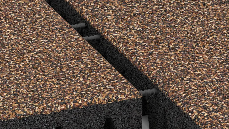 Je nach Ausführung werden die Matten und Platten im Halbverband oder Kreuzverband verlegt. WARCO bietet zwei Verbindungssysteme: Kunststoffdübel oder formschlüssige Puzzle-Verzahnungen. Besonders die Puzzle-Verzahnung verhindert zuverlässig ein Auseinanderdriften der Fläche und sorgt für dauerhafte Lagestabilität.