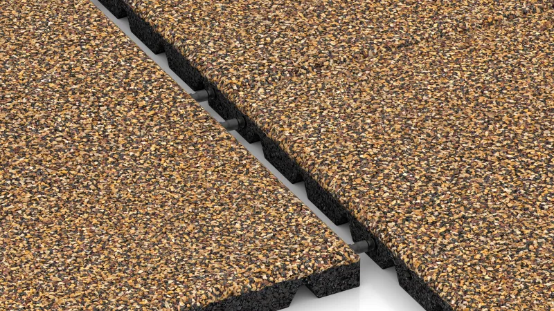 Je nach Ausführung werden die Matten und Platten im Halbverband oder Kreuzverband verlegt. WARCO bietet zwei Verbindungssysteme: Kunststoffdübel oder formschlüssige Puzzle-Verzahnungen. Besonders die Puzzle-Verzahnung verhindert zuverlässig ein Auseinanderdriften der Fläche und sorgt für dauerhafte Lagestabilität.