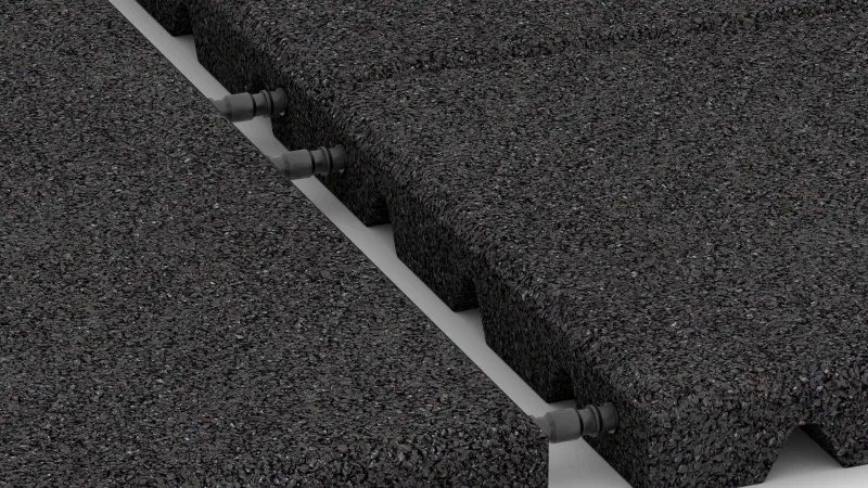 Die halbe Platte ist eine sinnvolle Ergänzung zur Gummigranulat-Platte Typ FS bei der Anlage von Flächen mit rasterkonformen Abmessungen (Länge und Breite jeweils als Vielfaches von 50 cm). Die Platten Typ FS müssen im Halbversatz und unter Zuhilfenahme von Streckverbindern verbaut werden. Das bedeutet also, dass jede zweite Reihe mit einer halben Platten beginnt und mit einer halben Platte endet.