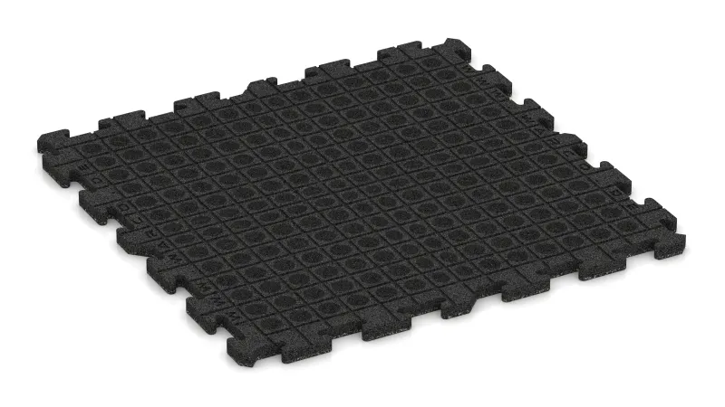 Die umlaufende Puzzle-Verzahnung verbindet die Platten formschlüssig zu einer geschlossenen Fläche. Auch ohne Verklebung bleibt der Belag lagestabil an Ort und Stelle. Er kann auf festen Untergründen verlegt werden, gleicht kleinere Unebenheiten aus und lässt sich bei Veranstaltungen im Freien sogar auf einer gut vorbereiteten Grasfläche einsetzen. Zuschnitte können je nach Bedarf mit einem scharfen Messer, einer Stichsäge oder einer Kreissäge direkt vor Ort hergestellt werden.