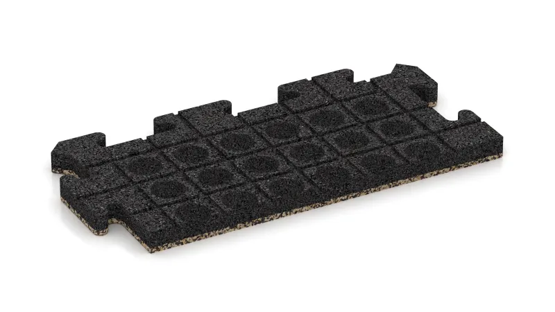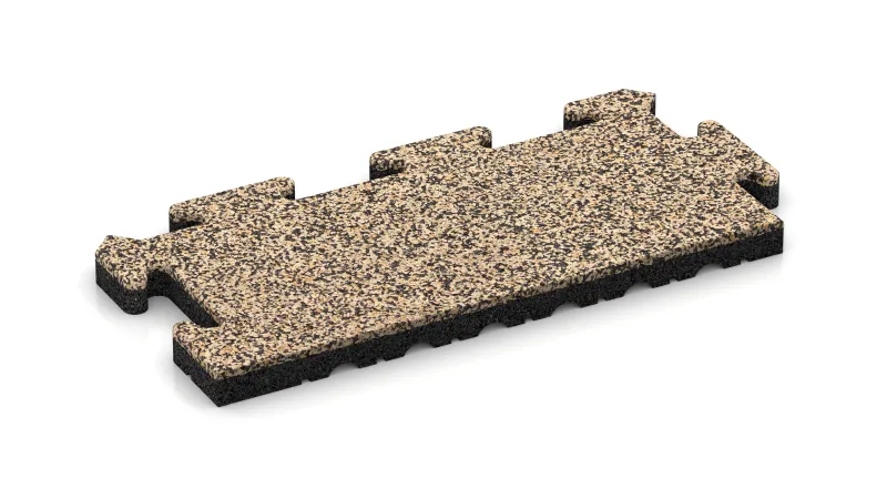Die Randplatte ermöglicht einen sauberen, geraden Abschluss entlang der Außenkanten einer Plattenfläche. Jede Einheit entspricht einer halben Puzzleplatte: Die Innenseite ist mit der vertrauten Puzzleverzahnung ausgestattet und lässt sich passgenau mit den übrigen Platten verbinden, während die Außenseite eine glatte, gerade Abschlusskante bildet. Damit wird die gesamte Fläche funktional und optisch sauber eingefasst.
