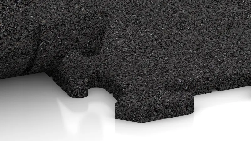 Jeder Treppenbelag ist 1,8 cm stark und in den Formaten 50 × 50 cm sowie 100 × 100 cm erhältlich. Die umlaufende Puzzleverbindung sorgt dafür, dass die einzelnen Elemente passgenau ineinandergreifen. So lässt sich der Stufenbelag flexibel an jede Treppenform anpassen. Auch zugeschnittene Teile des Treppenbelags verbinden sich fest und formschlüssig – ein Vorteil, der gerade bei schmalen oder unregelmäßigen Stufen für eine präzise und wirtschaftliche Verlegung sorgt.